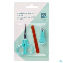 De Baby manicureset bestaat uit een nagelschaartje, vijl en nagelknipper.