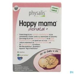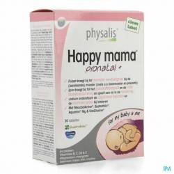 Heb je een kinderwens, ben je zwanger en van plan om borstvoeding te geven? Physalis Happy mama® biedt een complete oplossing met vitaminen en mineralen zodat jij en je (toekomstige) kindje optimaal deze periode doormaken. Physalis Happy mama® bevat Quatrefolic®, de biologisch actieve vorm van foliumzuur oftewel 5-MTHF (gebonden aan glucosamine). Deze vorm is voor het lichaam direct bruikbaar zonder enige metabolisatie, in tegenstelling tot andere vormen van foliumzuur. Folaat draagt bij tot de weefselgroei bij de (aanstaande) moeder (zoals o.a. baarmoeder en placenta). De bio-actieve vitamine B12 (MecobalActive®, een zeer zuivere vorm van methylcobalamine), vitamine C en ijzer dragen bij tot de vermindering van vermoeidheid. Ijzer draagt bij tot de aanmaak van rode bloedcellen en speelt een rol in de celdeling, net zoals vitamine D. Jodium ondersteunt de cognitieve functies en de normale groei bij kinderen. Bevat choline (VitaCholine™) dat bijdraagt tot een normaal homocysteïnemetabolisme. Kan gebruikt worden in combinatie met Physalis Omega 3 forte of Omega 3 ultra.