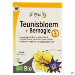 Physalis Teunisbloem + Bernagie is een synergistische formule met olie van de zaden van de teunisbloem en de bernagieplant (die GLA of gamma-linoleenzuur bevatten), monniken- peper en vitamine E. Zowel *teunisbloem als monnikenpeper dragen bij tot het (pre) menstrueel comfort. Teunisbloem draagt bij tot het behoud van een gezonde huid. Vitamine E draagt bij tot de bescherming van de cellen tegen vrije radicalen.