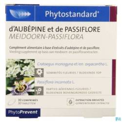 Meidoorn-(Crataegus monogyna en oxyacantha L., bloeiende top) en passiflora(Passiflora incarnata L.,bovengronds gedeelte)extracten (drager: acaciavezel), drager: micro-krystallijne celullose,stabilisator: vertakte carboxymethylcellulose, antiklontermiddel: