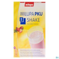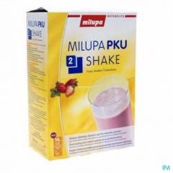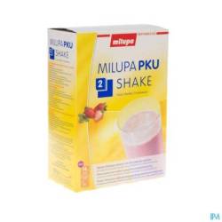 Milupa PKU 2-shake is een poedervormig aminozuurmengsel. Bevat koolhydraten en vet, met vitaminen, mineralen en spoorelementen. Milupa PKU 2-shake bevat sporen van fenylalanine uit natuurlijke ingrediënten. Milupa PKU 2-shake bevat sporen van fenylalanine uit natuurlijke ingrediënten. Aardbeiensmaak bevat 5 mg phe per zakje en chocoladesmaak bevat 7,5 mg phe per zakje.