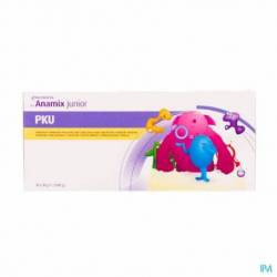 PKU Anamix junior is een fenylalaninevrije drinkvoeding in poedervorm op basis van vrije aminozuren. Het bevat een gebalanceerde hoeveelheid essentiële en niet-essentiële aminozuren, koolhydraten, vetten (met DHA), vitaminen, mineralen, spoorelementen en voedingsvezels. Met suikers en zoetstof.
