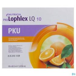 PKU Lophlex LQ is een kant-en-klare fenylalaninevrije* dieetvoeding. Het bevat essentiële en niet-essentiële aminozuren, , vitaminen, spoorelementen en enkele mineralen. Bevat DHA. Met suikers en zoetstoffen.