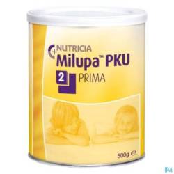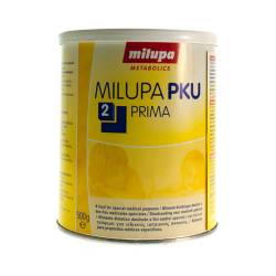 Milupa PKU 2 Prima is een fenylalaninevrij aminozuurmengsel met vitaminen, mineralen en spoorelementen.