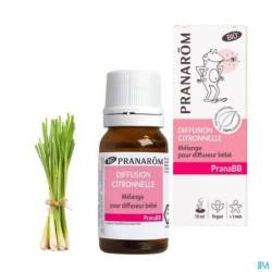 Het PranaBB "Citronella" -verspreider-mengsel combineert de effectiviteit van citroeneucalyptus, Java-citroengras met de aangename geuren van palmarosa en geranium en atlasceder. Alles voor een formule van 100% gecertificeerde biologische etherische oliën *. Baby kan gemakkelijk slapen.