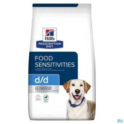 Hill's PRESCRIPTION DIET d/d Hondenvoer met Eend & Rijst is een volledig dieetvoeder voor de vermindering van intoleranties voor bepaalde ingrediënten en/of voedingsstoffen en voor de ondersteuning van de huidfunctie bij huidaandoeningen en overmatige haaruitval bij volwassen honden. Dit voeder bevat een hoog gehalte aan linolzuur en eicosapentaeenzuur en docosahexaeenzuur tezamen en een geselecteerd en beperkt aantal eiwit- en koolhydraatbronnen.