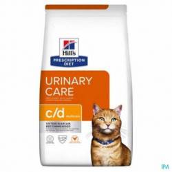 Hill's Prescription Diet c/d Multicare Kattenvoer met Kip is een volledig dieetvoeder voor het verminderen van het terugkeren van struvietstenen (oorzaak van aandoeningen van de lagere urinewegen), voor het oplossen van struvietstenen en voor het verminderen van de vorming van oxalaatstenen bij volwassen katten. Dit voeder heeft urine-onderverzadigende eigenschappen voor struviet, urine-alkaliserende eigenschappen en bevat een laag gehalte aan magnesium, calcium en vitamine D.