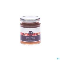 Rabarber 62%, zoetstof: maltitol, geleermiddel: appelpectine, citroensap.