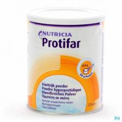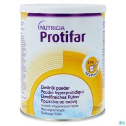 Protifar is een voeding voor medisch gebruik. Dieetvoeding bij hypoproteïnemie. Te gebruiken onder medisch toezicht. Protifar is een aanvullende eiwitbron in poedervorm om aan maaltijden toe te voegen. Het levert extra eiwitten om mogelijke tekorten aan te vullen. Protifar is glutenvrij. Bevat melk, soja. Protifar is een voeding voor medisch gebruik. Medische voeding wordt door uw arts of diëtist geadviseerd bij ziektegerelateerde ondervoeding als aanvulling op de normale voeding.