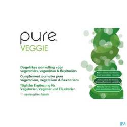 Pure Veggie bevat de belangrijkste vitamines en mineralen die men in dierlijke producten aantreft in de juiste dosering en de ideale chemische vormen. Men maakt uiteraard gebruik van een vegetarische capsule met enkel biologische rijstebloem en plantaardig magnesiumstearaat (= magnesiumzouten van vetzuren) als hulpstoffen.