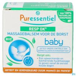 De smeltende textuur van deze Resp Ok® babybalsem, verrijkt met plantaardige zonnebloemolie, bijenwas en karitéboter met hydraterende en voedende eigenschappen, zorgt voor een ontspannende, verwarmende massage en geeft baby een kalmerend borstcomfort.