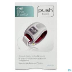 De Push med Elleboogbrace Epi vermindert pijnklachten bij een tennis- of golferselleboog. De drukpelotte zorgt voor gerichte druk op de extensoren (tennisarm) of de flexoren (golfersarm) van de pols. Op deze wijze wordt de aanhechting van deze spieren op de elleboog ontlast. De pelotte bestaat uit een huidvriendelijk en veerkrachtig polymeer. Het kunststoffen verstevigingselement zorgt voor een gelijk verdeelde druk rond de arm waardoor knellen wordt voorkomen. De goede anatomische pasvorm en het materiaalsoort van de pelotte bevorderen het positiebehoud van de brace tijdens beweging. De brace is eenvoudig met één hand rond de onderarm in te stellen en te sluiten. Sympress™ Technologie De brace is gemaakt van Sympress™, een hoog kwalitatief comfortabel materiaal. Het product voelt zacht aan en biedt de gebruiker een comfortabel en beschermd gevoel. De Push med Elleboogbrace Epi is eenvoudig aan te leggen en kan zonder problemen gewassen worden. INDICATIES
