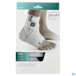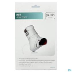 De Push med Enkelbrace biedt steun aan het enkelgewricht en is langere tijd inzetbaar op een breed scala van indicaties en gebruiksmomenten. De brace is gebaseerd op de principes van de functionele tapebandage. De mate van druk en pronatie-supinatie beperking is instelbaar en een siliconen applicatie aan de binnenzijde van de brace zorgt voor een goed positiebehoud. Rond kwetsbare delen rond de enkel, zoals wreef en achillespees, zijn comfortzones toegepast. De brace is comfortabel te dragen en eenvoudig door de gebruiker zelf aan te leggen, mede door de ruime instap en een geïntegreerde heellock-wikkeling. Sympress™ Technologie De brace is gemaakt van Sympress™, een hoog kwalitatief comfortabel materiaal. Het product voelt zacht aan en biedt de gebruiker een comfortabel en beschermd gevoel. De Push med Enkelbrace is eenvoudig aan te leggen en kan zonder problemen gewassen worden. INDICATIES
