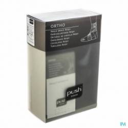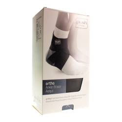 De Push ortho Enkelbrace Aequi is een efficiënte enkelorthese die een goede balans biedt tussen krachtige mechanische ondersteuning van de instabiele enkel en draagcomfort. De rigide ondersteuning bevindt zich uitsluitend aan de mediale zijde van de enkel en heeft een uitsparing aan de malleolus. De laterale zijde is gemaakt van voorgevormd schuim, dat zich eenvoudig aanpast aan de individuele vorm van de enkel.De brace wordt gesloten door een diagonale band. De elastische banden brengen druk aan rond de enkel. De Push Aequi is inzetbaar bij functionele behandeling van enkelletsel en voor langdurig gebruik bij chronische instabiliteit. De inversie/ eversie beweging (naar buiten en binnen kantelen van de voet) wordt beperkt, terwijl plantaire dorsaal flexie (buigen en strekken) in voldoende mate vrij gelaten wordt, waardoor geen hinder bij het afrollen van de voet ondervonden wordt. De Push Aequi wordt over de sok gedragen. Optimale stabilisatie wordt gerealiseerd wanneer de brace in een gesloten (veter)schoen gedragen wordt. INDICATIES