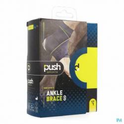 De Push Sports Enkelbrace 8 biedt steun bij een lichte of (vrijwel) herstelde enkelverzwikking. De elastische band, die in de vorm van een 8 rond de enkel gewikkeld wordt, stabiliseert de enkel en geeft een stevige, aangename compressie. Dit resulteert voor de gebruiker in een zeker gevoel tijdens het sporten. De speciale antislip stroken van TPU lopen schuin over de voorvoet en rond de hiel en verhogen op die plekken de elastische kracht van de brace. De TPU stroken aan weerszijden van de enkel (stijgbeugel) zorgen voor een proprioceptieve gewaarwording. De enkelbrace is gemaakt van zeer slank en vochtafvoerend materiaal en droogt snel. De Push Sports Enkelbrace 8 is ook zonder schoen te gebruiken. INDICATIES