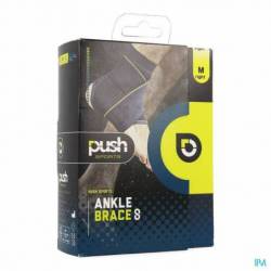 De Push Sports Enkelbrace 8 biedt steun bij een lichte of (vrijwel) herstelde enkelverzwikking. De elastische band, die in de vorm van een 8 rond de enkel gewikkeld wordt, stabiliseert de enkel en geeft een stevige, aangename compressie. Dit resulteert voor de gebruiker in een zeker gevoel tijdens het sporten. De speciale antislip stroken van TPU lopen schuin over de voorvoet en rond de hiel en verhogen op die plekken de elastische kracht van de brace. De TPU stroken aan weerszijden van de enkel (stijgbeugel) zorgen voor een proprioceptieve gewaarwording. De enkelbrace is gemaakt van zeer slank en vochtafvoerend materiaal en droogt snel. De Push Sports Enkelbrace 8 is ook zonder schoen te gebruiken. INDICATIES