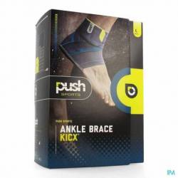 De Push Sports Enkelbrace Kicx biedt de best mogelijke bescherming tegen enkelverzwikking tijdens het sporten. Zowel bij trainingshervatting als ter preventie van terugkerend enkelletsel bij enkelinstabiliteit is de Push Sports Kicx uitermate geschikt. De functionele banden die kruisen aan de buitenzijde van de enkel zorgen voor een effectieve inversiebeperking. De banden zijn verankerd aan de verstevigde binnenzijde van de brace en verlopen op anatomisch verantwoorde wijze naar de buitenzijde van de enkel. Bij het naar binnen kantelen van de voet komen de banden op spanning en voorkomen dat de enkel verzwikt. Sporten blijft gewoon mogelijk, de Push Sports Kicx staat plantair- en dorsaalflexie in het enkelgewricht namelijk toe. Het hoogwaardige elastische materiaal sluit nauw aan op de anatomie van de enkel en biedt een aangename druk rond het gewricht. De brace is ultradun en past dus perfect in slanke sportschoenen. Voor optimaal draagcomfort kan de brace over een dunne sok gedragen worden. Voor een goede functie dient de Push Sports Kicx altijd in combinatie met een schoen gedragen te worden. PROPHY-X Preventief 'Prophy-X' bandsysteem aan de buitenzijde van het enkelgewricht met 2 elkaar kruisende banden. De dorsale (achterste) Prophy-X band staat haaks op de inversie/eversie rotatie-as en voorkomt het naar binnen kantelen (verzwikken) van de voet. De ventrale (voorste) Prophy-X band biedt tegenwicht en weerstaat de kracht die op de dorsale band wordt uitgeoefend. De Prophy-X banden kruisen elkaar in de rotatie-as van het bovenste spronggewricht waardoor het afrollen van de voet niet wordt gehinderd. INDICATIES