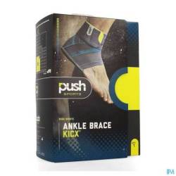 De Push Sports Enkelbrace Kicx biedt de best mogelijke bescherming tegen enkelverzwikking tijdens het sporten. Zowel bij trainingshervatting als ter preventie van terugkerend enkelletsel bij enkelinstabiliteit is de Push Sports Kicx uitermate geschikt. De functionele banden die kruisen aan de buitenzijde van de enkel zorgen voor een effectieve inversiebeperking. De banden zijn verankerd aan de verstevigde binnenzijde van de brace en verlopen op anatomisch verantwoorde wijze naar de buitenzijde van de enkel. Bij het naar binnen kantelen van de voet komen de banden op spanning en voorkomen dat de enkel verzwikt. Sporten blijft gewoon mogelijk, de Push Sports Kicx staat plantair- en dorsaalflexie in het enkelgewricht namelijk toe. Het hoogwaardige elastische materiaal sluit nauw aan op de anatomie van de enkel en biedt een aangename druk rond het gewricht. De brace is ultradun en past dus perfect in slanke sportschoenen. Voor optimaal draagcomfort kan de brace over een dunne sok gedragen worden. Voor een goede functie dient de Push Sports Kicx altijd in combinatie met een schoen gedragen te worden. PROPHY-X Preventief 'Prophy-X' bandsysteem aan de buitenzijde van het enkelgewricht met 2 elkaar kruisende banden. De dorsale (achterste) Prophy-X band staat haaks op de inversie/eversie rotatie-as en voorkomt het naar binnen kantelen (verzwikken) van de voet. De ventrale (voorste) Prophy-X band biedt tegenwicht en weerstaat de kracht die op de dorsale band wordt uitgeoefend. De Prophy-X banden kruisen elkaar in de rotatie-as van het bovenste spronggewricht waardoor het afrollen van de voet niet wordt gehinderd. INDICATIES