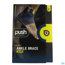 De Push Sports Enkelbrace Kicx biedt de best mogelijke bescherming tegen enkelverzwikking tijdens het sporten. Zowel bij trainingshervatting als ter preventie van terugkerend enkelletsel bij enkelinstabiliteit is de Push Sports Kicx uitermate geschikt. De functionele banden die kruisen aan de buitenzijde van de enkel zorgen voor een effectieve inversiebeperking. De banden zijn verankerd aan de verstevigde binnenzijde van de brace en verlopen op anatomisch verantwoorde wijze naar de buitenzijde van de enkel. Bij het naar binnen kantelen van de voet komen de banden op spanning en voorkomen dat de enkel verzwikt. Sporten blijft gewoon mogelijk, de Push Sports Kicx staat plantair- en dorsaalflexie in het enkelgewricht namelijk toe. Het hoogwaardige elastische materiaal sluit nauw aan op de anatomie van de enkel en biedt een aangename druk rond het gewricht. De brace is ultradun en past dus perfect in slanke sportschoenen. Voor optimaal draagcomfort kan de brace over een dunne sok gedragen worden. Voor een goede functie dient de Push Sports Kicx altijd in combinatie met een schoen gedragen te worden. PROPHY-X Preventief 'Prophy-X' bandsysteem aan de buitenzijde van het enkelgewricht met 2 elkaar kruisende banden. De dorsale (achterste) Prophy-X band staat haaks op de inversie/eversie rotatie-as en voorkomt het naar binnen kantelen (verzwikken) van de voet. De ventrale (voorste) Prophy-X band biedt tegenwicht en weerstaat de kracht die op de dorsale band wordt uitgeoefend. De Prophy-X banden kruisen elkaar in de rotatie-as van het bovenste spronggewricht waardoor het afrollen van de voet niet wordt gehinderd. INDICATIES