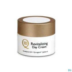 Q10 Revitaliserende Dagcrème is een unieke parabeenvrije formule met natuurlijke ingrediënten voor een optimaal gezonde huid. Het bevat een mix van voedingsstoffen zoals Coënzym Q10, Pycnogenol®, Jojoba-olie, Abrikoospitolie en Olijf Squalane.