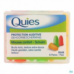 Met de gehoorbescherming uit schuim van Quies kunt u sterke geluiden met gemiddeld 35 dB verzwakken, zonder dat u volledig van de buitenwereld afgesloten bent. De anatomische vorm ervan past zich aan de gehoorgang aan zodat de bescherming perfect in het oor blijft zitten.