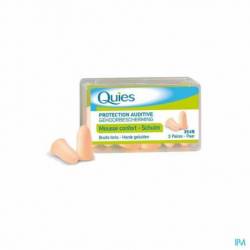 Met de gehoorbescherming uit schuim van Quies kunt u sterke geluiden met gemiddeld 35 dB verzwakken, zonder dat u volledig van de buitenwereld afgesloten bent. De anatomische vorm ervan past zich aan de gehoorgang aan zodat de bescherming perfect in het oor blijft zitten.