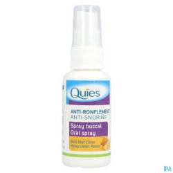 De spray tegen het snurken van Quies werkt rechtstreeks in op de oorzaken van het snurken: dankzij de xanthaangom smeert deze spray het zacht verhemelte waardoor trillingen tijdens het ademen worden vermeden. Deze actieve bestanddelen, zonder plantaardige oliën, houden het achterste deel van de keel de hele nacht door goed vochtig.
