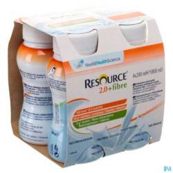 Resource® 2.0+ Fibre is een kant-en-klare voeding voor medisch gebruik. Volledige voeding, energierijk (2,0 kcal/ml), met vezels (5g/flesje). Een flesje Resource® 2.0+ Fibre bevat 200ml en is beschikbaar in 7 lekkere smaken.