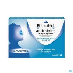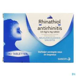 Rhinathiol antirhinitis tabletten en siroop zijn geneesmiddelen op basis van de werkzame stoffen fenylefrine hydrochloride (een vasoconstructivum met decongestieve eigenschappen) en chloorfenamine (een antihistaminicum).