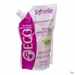 De Zachte wasoplossing Saforelle werd speciaal geformuleerd voor de gevoelige of geïrriteerde huid. Ze reinigt zacht en kalmeert irritaties en een onaangenaam gevoel.