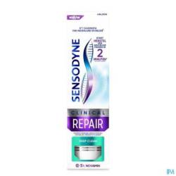 Sensodyne Clinical Repair Deep Clean is een dagelijkse fluoride tandpasta voor gevoelige tanden. De formule met 5% Novamin vormt een beschermende laag over de gevoelige gedeeltes van de tand en beschermt zo tegen gevoeligheid.