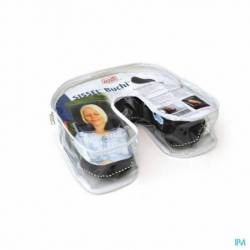 Hoefijzervormig boekweitkussen. Compact gevuld kussen met natuurlijke boekweit. Voor onderweg of lekker voor onder het hoofd bij het TV kijken.