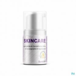 Een evenwichtige mix van biologisch gecertificeerde oliën zoals argan, ricinus en cocos met de essentiële oliën van lavendel, tea, tree, cypres, rozemarijn, bonekruid en tijm in een natuurlijk basiscrème. De plantaardige oliën hebben een herstellend, voedend en regenerend vermogen. De mix van essentiële oliën zorgt voor een doeltreffende huidzuivering en een krachtig herstel. Skin care verzorgt het gezicht, de huid, de nagels, de lies, ontsierde benen, het tandvlees, de genitale zone, etc. tegen roodheid en irritatie. Niet in contact brengen met de ogen.