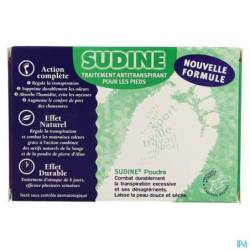 SUDINE® Poeder - Anti-transpirantbehandeling voor voeten Reguleert transpiratie en bestrijdt onaangename geurtjes dankzij de gecombineerde werking van Echte Salie en Aluinsteenpoeder, die het samentrekkende, deodorant en antiseptische eigenschappen geven.