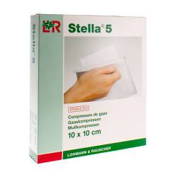 in een zachte of harde blisterverpakking die zich zeer makkelijk laat openen, zonder dat er losse vezeltjes vrijkomen en gesteriliseerde kompressen met verschillende afmetingen en lagen, met of zonder bariumdraad