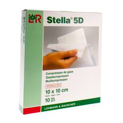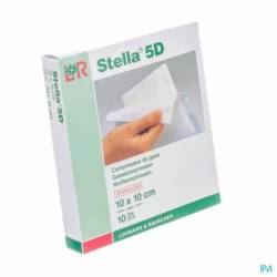in een zachte of harde blisterverpakking die zich zeer makkelijk laat openen, zonder dat er losse vezeltjes vrijkomen en gesteriliseerde kompressen met verschillende afmetingen en lagen, met of zonder bariumdraad