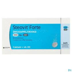 De werkzame stoffen in Steovit Forte sinaasappel zijn:- 1000 mg calcium (als calciumcarbonaat)- 880 I.E. vitamine D3 (overeenkomend met 22 microgram cholecalciferol)