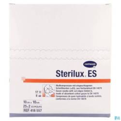 Vervaardigd uit absorberend katoengaas conform EN 14079, met gevouwen zelfkanten (= ES): kan verschillende keren worden opengevouwen voor gebruik in groter formaat zonder rafelvorming; sterk absorberend, luchtdoorlatend, zacht en soepel, verkrijgbaar in verschillende lagen en draden, Steriel.