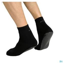 Gebreide sok met siliconenzool Indicaties: Ter bescherming van de voetzool Voorkomen van vallen op gladde vloeren zoals parket, linoleum, … Samenstelling: 80% CO, 15% PA, 5% EL