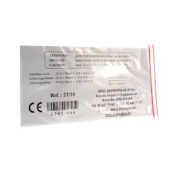 Tweekleurige tandplakverklikker, blauw voor het lokaliseren van de oude tandplak, rood voor de recente tandplak. Fruitsmaak.