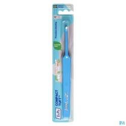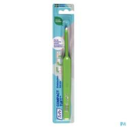 De Compact Tuft tandenborstel van TePe is een speciale gehoekte borstel met kleine tuft voor precisie reiniging. Dankzij het ontwerp kunnen de tanden grondiger worden gereinigd dan met een gewone tandenborstel, waardoor gebieden worden bereikt die normaal ontoegankelijk zijn. De afgeronde Compact Tuft met korte extra zachte haren zorgt voor een optimale balans tussen stabiliteit en verzorging.
