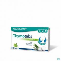 Naast tijm bevatten de thymotabs-pastilles ook vitamine C, wat nuttig is om het natuurlijke afweersysteem van het lichaam te ondersteunen tegen verkoudheden. De thymotabs-pastilles zijn dus ideaal om de winterse aanvallen te bestrijden en de geprikkelde, gezwollen of schorre keel te verzachten.