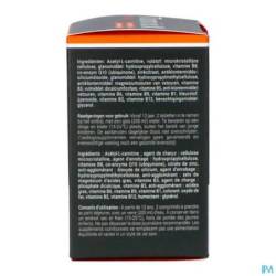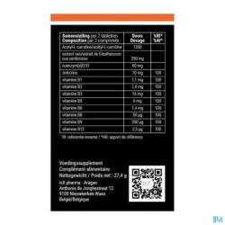(Acetyl-L-carnitine, vulstof: microkristallijne cellulose, glansmiddel: hydroxpropylcellulose, vitamine B8, co-enzym Q10 (ubiquinone), zinkcitraat, antiklontermiddel: siliciumdioxide, glansmiddel: hydroxypropylmethylcellulose, antiklontermiddel: magnesiumzouten van vetzuren, vitamine B3, vulmiddel: dicalciumfosfaat, vitamine B5, anti-klontermiddel: vetzuren, vitamine B6, vitamine B9, vitamine B1, kleurstof: ijzeroxide, vitamine B2, vitamine B12, bevochtigingsmiddel: glycerol.)