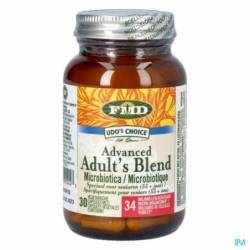 Udo's Choice® Advanced Adult's Blend is speciaal ontwikkeld voor oudere volwassenen. Het bevat 34 miljard 'vriendelijke' bacteriën per capsule en 7 verschillende stammen lacto- en bifidobacteriën. Met 30% bifido bacteriën heeft Advanced Adult's Blend een hoger percentage bifido bacteriën in vergelijking met andere microbiotica op de markt.
