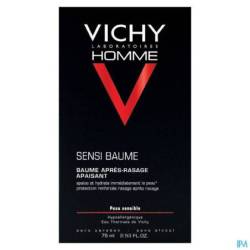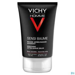 De Vichy Homme Sensi Baume Aftershave is een kalmerende en versterkende balsem voor een zeer gevoelige huid. Het helpt tegen huidirritaties en een branderig gevoel na het scheren. De formule is verrijkt met het Vichy Vulkanisch Water rijk aan 15 mineralen, gecombineerd met de kalmerende werking van calcium. Hierdoor wordt een gevoelige huid dubbel verzorgd: 1. De huid wordt direct gekalmeerd na het scheren 2. De huid word steeds sterker na elke scheerbeurt. Hierdoor blijft de huid comfortabeler en rustiger na het scheren. De aftershave bevat geen alcohol en geen parfum en respecteert de gevoelige huid optimaal.