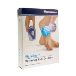 ViscoSpot zorgt voor een zacht hielbed, vangt stoten op en ontziet de gewichten. Met behulp van drie met elkaar verbonden ontlastingskernen neemt het de druk weg van het pijncentrum van de hielspoor, ontlast de aanhechting van de fascia plantaris en steunt de voet bij het afrollen. Het visco-elastische hielkussen is anatomisch gevormd en sluit optimaal aan op elke voet.