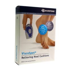ViscoSpot zorgt voor een zacht hielbed, vangt stoten op en ontziet de gewichten. Met behulp van drie met elkaar verbonden ontlastingskernen neemt het de druk weg van het pijncentrum van de hielspoor, ontlast de aanhechting van de fascia plantaris en steunt de voet bij het afrollen. Het visco-elastische hielkussen is anatomisch gevormd en sluit optimaal aan op elke voet.