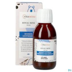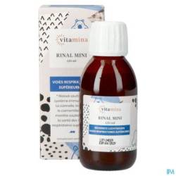 Rinal MINI is een viskeuze vloeistof zonder geraffineerde suikers of onnatuurlijke zoetstoffen, die bestaat uit vloeibare totaalextracten van kaneel, rode tijm, niaouli, echte kamille, mierikswortel, pepermunt en vlierbessen.