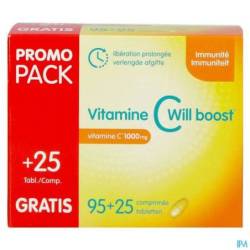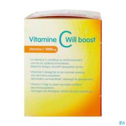 De Vitamine C Will Boost is een voedingssupplement dat 1000mg vitamine C vrijgeeft. Een deel van de vitamine C wordt direct vrijgegeven, de andere helft wordt in verlengde afgifte vrijgegeven, zo voorziet het het lichaam gedurende de hele dag van vitamine C.