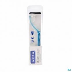 VITIS Implant Angular tandenborstel is zo gebogen dat het poetsen en reinigen van de implantaten aan de binnenzijde van het gebit gemakkelijk wordt. De monotip borstelkop is voorzien van zachte en afgeronde Tynex® borstelharen. Hierdoor wordt het kwetsbare tandvlees rond een implantaat niet beschadigd. Zo kunnen de implantaten goed gereinigd worden.